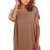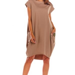 Luźna sukienka z krótkimi rękawami i dużymi kieszeniami. Sukienka wykonana z bawełny. Na kieszeni ozdobiona złotą naszywką.