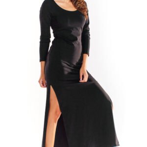 Niezwykle kobieca sukienka, sukienka z długimi rękawami, którego banalną formę złamały rozcięcia po bokach. Przeznaczona dla kobiet lubiących podkreślać swoje kształty. Długość maxi pozwala optycznie wyszczuplić sylwetkę i podkreślić wszystkie mocne strony kobiet.