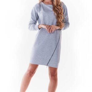 Mini sukienka wykonana z dzianiny. Sukienka z długim rękawem połączona z ramoneską i sportowym obuwiem stworzy ciekawą stylizację na każdą okazję. Charakteru dodaje sukience zamek z przodu, którym można regulować rozporek. Zaprojektowano i uszyto w Polsce.