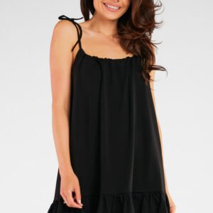 Letnia sukienka z miękkiej dzianiny. Model poszerzany ku dołowi kryję drobne niedoskonałości figury oraz jest rewelacyjną opcją dla kobiet w ciąży. Sukienka wykończona falbaną, która wpływa na dziewczęcy charakter całości. Zaprojektowano i uszyto w Polsce.