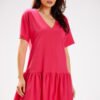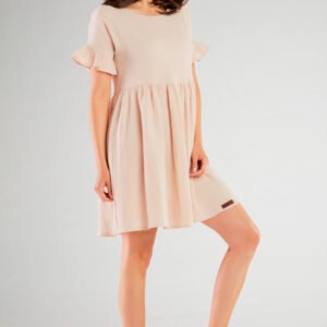 Sukienka została wykonana głownie z bawełny oraz niewielkiej domieszki elastanu. Materiał niezwykle sprężysty pozwala skórze na swobodne oddychanie. Model z krótkim rękawem to idealna opcja w sezonie wiosenno-letnim. Sukienka rozkloszowana, rewelacyjnie tuszuję drobne niedoskonałości sylwetki. Zaprojektowano i uszyto w Polsce.