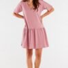 Sukienka o luźniejszym kroju, bez rękawów, zapewniająca swobodę ruchów i komfort noszenia. Z przodu klasyczny, okrągły dekolt, natomiast z tyłu efektowny dekolt w kształcie litery V, dodający kobiecego charakteru. Praktyczne kieszenie ukryte w szwach bocznych to funkcjonalny detal. Idealna na co dzień, do pracy lub na letnie spotkania.