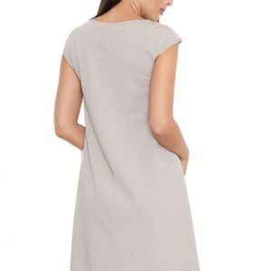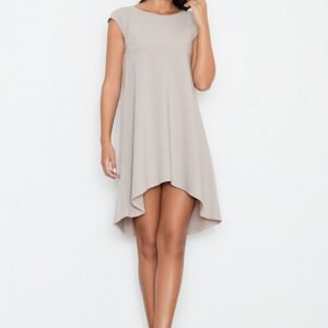 Elegancka, luźna sukienka o asymetrycznym kroju. Wykonana ze zwiewnego materiału, zapinana na zamek.