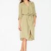 Modna sukienka z długim rękawem, długości mini. Posiada ozdobne, metalowe kółka. Wykonana z delikatnego materiału imitującego zamsz. Bardzo przyjemna w dotyku.