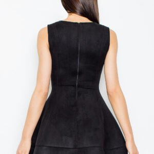 Elegancka sukienka bombka z odkrytymi ramionami. Wykonana z grubszego materiału imitującego zamsz. Ozdobne przeszycia, pięknie podkreślają sylwetkę.