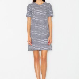 Prosta sukienka z krótkim rękawkiem o lekko rozkloszowanym kroju. Sukienka zapinana na kryty zamek. Idealna na wiele okazji.