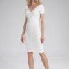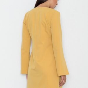 Elegancka sukienka o prostym kroju zapinana na kryty zamek, dekolt w szpic. Sukienka posiada rękawy z oryginalnymi rozcięciami. Sukienka bez podszewki. Sukienka wykonana jest z wysokiej jakości, gładkiego, nierozciągliwego materiału.