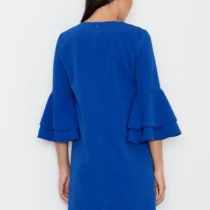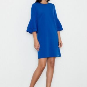 Elegancka, luźna sukienka z zapięciem z tyłu na zamek. Dodatkowego stylu dodaje falbanka przy rękawach która nadaje nowoczesności i subtelności.