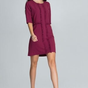Elegancka sukienka z rękawem 3/4 z falbankami. Model nadaje wykwintności i wyrazistości. Prosta , nietuzinkowa forma opływa sylwetkę i nadaje romantyczności.