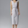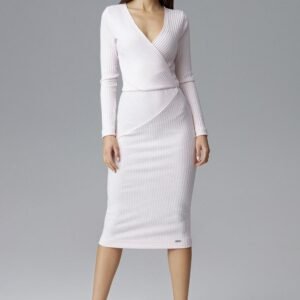 Dopasowana sukienka z długim rękawem z dobrej jakości tkaniny. Model z dekoltem w serek i gumką w pasie.