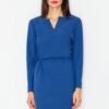 Beżowa długa koszulowa sukienka z podpinanym rękawem 3/4. Na wysokości biustu naszywane kieszenie. Zapinana z przodu na guziki, wiązana w pasie.