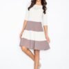 Sukienka mini z długim rękawem, dekolt w serek wykończony welurem, w pasie wszyta szeroka guma.