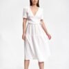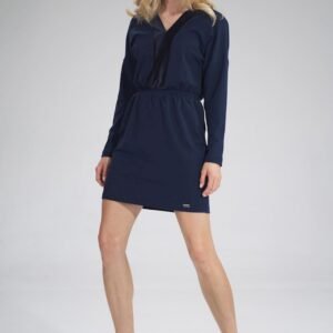Sukienka mini z długim rękawem, dekolt w serek wykończony welurem, w pasie wszyta szeroka guma.