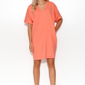 Niezwykle swobodna, minimalistyczna dresowa sukienka typu kimono. Jej długość podkreśla nogi, dlatego doskonale komponuje się z kozakami. Dekolt w serek odsłania obojczyki, tworząc przestrzeń dla pięknej biżuterii. Po bokach obecne są wsuwane kieszenie. Sukienka zapewnia swobodę ruchu. Rewelacyjnie będą się w niej czuły panie o figurze typu jabłko. Sukienka maskuje obszar brzucha i optycznie wydłuża szyję. Krótki rękaw w fasonie kimono nie podkreśla odznaczającej się bielizny. Dzięki temu dresowa kreacja prezentuje się kobieco i schludnie.