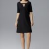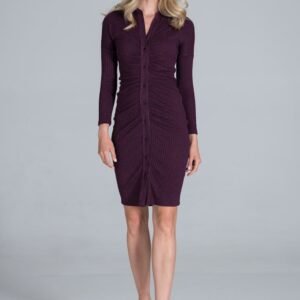 Sukienka midi z kołnierzykiem z lejącej, prążkowanej dzianiny, z długim rękawem, marszczona z przodu oraz zapinana na guziki.