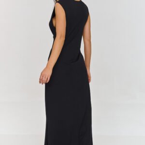 Stylowa sukienka maxi wykonana z lekkiej dzianiny wiskozowej to idealna propozycja na wiosenne i letnie dni. Charakteryzuje się luźnym krojem oraz wygodnym wiązaniem w talii, które dodaje jej kobiecości i pozwala na dopasowanie sukienki do figury, zapewniając przy tym komfort przez cały dzień. Okrągły dekolt zapewnia uniwersalność a brak rękawów sprawia, że jest to doskonała opcja na cieplejsze dni. Długość maxi dodaje jej klasy a boczne rozcięcie kokieteryjności i lekkości, jednocześnie wprowadzając dynamiczny i nowoczesny akcent do stylizacji. Sukienka ma klasyczny i minimalistyczny krój, który doskonale sprawdzi się zarówno w codziennych, jak i bardziej formalnych zestawieniach. Jest to uniwersalna opcja, która pasuje do różnych okazji. Zestaw ją ze sportowymi butami na co dzień lub eleganckimi sandałami, co uczyni ją idealnym wyborem na wypady na miasto, spacer czy weekendowy relaks.