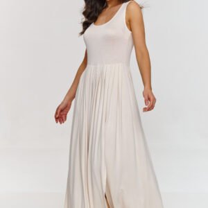 Ta sukienka maxi to połączenie elegancji i wygody, idealna na wiosenne i letnie dni. Wykonana z przyjemnej wiskozy, która zapewnia oddychalność i komfort podczas noszenia. Sukienka ma głęboki dekolt, który podkreśla górną część sylwetki a szerokie ramiączka gwarantują uniwersalność i modny wygląd. Długość maxi optycznie wydłuża sylwetkę a delikatne zakładki, zapewniają lekkość i płynność ruchów nadając sukience dynamiczny a zarazem elegancki charakter. Subtelne rozcięcie z boku wprowadza element zmysłowości i kobiecości. Dzięki niemu sukienka jest wygodna w noszeniu i pozwala na swobodę poruszania się. Sukienka maxi z rozcięciem to synonim klasy i stylu, która sprawdzi się zarówno w stylizacjach casualowych jak i bardziej formalnych w zależności jakie dobierzesz do niej dodatki.