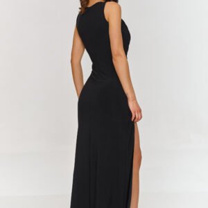 Ta sukienka maxi to doskonały wybór na eleganckie wyjścia, wesele, bankiety, czy inne wieczorne wydarzenia. Została zaprojektowana z myślą o podkreśleniu kobiecej sylwetki, oferując wyjątkowy wygląd i ponadczasowość. Marszczenia w górnej części, dodają jej zmysłowego charakteru i subtelnej elegancji oraz podkreślają linię talii, tworząc smukłą sylwetkę i idealnie komponując się z resztą fasonu. Głębokie rozcięcie na nodze wprowadza do sukienki dynamiczny element, który dodaje jej seksapilu i pozwala na wygodę ruchów. Dodatkowo takie wycięcie pięknie eksponuje nogi, a jednocześnie zachowuje klasę całej stylizacji. Dzięki prostemu, ale efektownemu krojowi, sukienka wygląda zarówno klasycznie, jak i nowocześnie, pasując do wielu wyjątkowych okazji. Z pewnością jest to kreacja, która doskonale eksponuje kobiecość i przyciąga wzrok.
