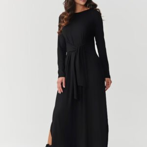 Sukienka maxi z wiskozy to połączenie wygody i ponadczasowej elegancji. Miękki, oddychający materiał sprawia, że nosi się ją wyjątkowo komfortowo przez cały dzień, a długie rękawy i efektowne wiązanie w talii pięknie podkreślają sylwetkę. Okrągły dekolt pasuje do każdego typu sylwetki i stylu. Subtelne rozcięcia po bokach nadają całości lekkości i kobiecego charakteru, jednocześnie zapewniając swobodę ruchów. To model, który doskonale sprawdzi się zarówno na co dzień, do pracy, jak i na spotkania w gronie znajomych. Wystarczy zmienić dodatki, aby nadać stylizacji bardziej casualowego albo eleganckiego charakteru. Dzięki klasycznym kolorom, antracytowym, czarnym, bordowym, khaki i czekoladowym łatwo dopasujesz ją do swojej garderoby i stworzysz wiele wyjątkowych zestawów. Sukienka maxi z wiązaniem w talii to propozycja, która łączy nowoczesny wygląd, wygodę i uniwersalność. Świetnie prezentuje się zarówno z botkami i ramoneską, jak i w duecie z eleganckimi szpilkami czy sportowymi sneakersami.