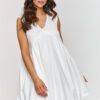 Ta sukienka mini łączy w sobie wygodę i kobiecą elegancję. Jej wyjątkowy krój z luźną górą i dopasowanym dołem tworzy efektowną sylwetkę, podkreślając talię i eksponując nogi. To idealna propozycja dla kobiet, które cenią modny wygląd i komfort w jednym. Dzięki marszczeniom po bokach sukienka doskonale modeluje sylwetkę, dodając jej lekkości i zmysłowego charakteru. Luźna góra z długim rękawem zapewnia swobodę i subtelny, elegancki efekt oraz skutecznie maskuje niedoskonałości a dopasowany dół sprawia, że całość prezentuje się niezwykle kobieco i nowocześnie. Uniwersalny fason pozwala na różnorodne stylizacje ? sukienka świetnie sprawdzi się w połączeniu ze szpilkami na wieczorne wyjścia, a w zestawie z botkami lub kozakami zyskuje bardziej casualowy, miejski charakter. To model nadający się na imprezę, randkę, spotkanie ze znajomymi, ale również na eleganckie przyjęcie. Jeśli szukasz sukienki mini, która łączy w sobie wygodę, styl i ponadczasową kobiecość, ten model z marszczeniem i luźną górą będzie idealnym wyborem.