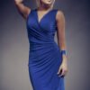 Elegancka sukienka z pianki, bez rękawów oraz półokrągłym dekoltem. Sukienka zapinana na kryty zamek. Model o klasycznym fasonie, wykończony ozdobnymi przeszyciami.