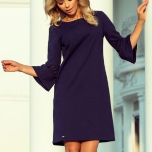 Sukienka Margaret z rozkloszowanym rękawkiem i koronkową wstawka, bardzo wygodna i niekrępująca ruchów w kolorze granatowym. Marka numoco. Produkcja Polska.