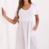 Stylowa i wygodna sukienka na co dzień o kobiecym, rozkloszowanym kroju. Model midi z prostokątnym dekoltem oraz wiązanymi ramiączkami, które pozwalają idealnie dopasować długość i zapewniają komfort noszenia. Gorsetowa talia pięknie podkreśla sylwetkę, a wszyte usztywniane miseczki zapewniają dodatkowe podtrzymanie biustu, dzięki czemu sukienkę można nosić bez stanika. Z tyłu marszczenia, które nie tylko nadają sukience uroku, ale także zwiększają elastyczność i wygodę noszenia. Zapięcie na guziki wzdłuż przodu dodaje jej dziewczęcego charakteru i ułatwia zakładanie. Modny kwiatowy wzór sprawia, że sukienka przyciąga uwagę i wpisuje się w najnowsze trendy. Wykonana z przewiewnego materiału, mieszanki poliestru i elastanu, który zapewnia swobodę ruchów i idealne dopasowanie do ciała. Świetna propozycja na codzienne wyjścia, spotkania z przyjaciółmi czy luźne letnie spacery, zawsze wtedy, gdy chcesz wyglądać stylowo, ale czuć się swobodnie.