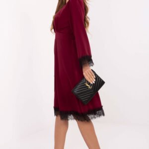 Stylowa sukienka rozkloszowana, która łączy elegancję z subtelnym, kobiecym wdziękiem. Wykonana z wysokiej jakości mieszanki poliestru i wiskozy, jest przyjemna w dotyku, przewiewna i doskonale układa się na sylwetce. Model o długości midi i kopertowym dekolcie pięknie podkreśla figurę, a rozkloszowany fason nadaje lekkości i swobody. Długie rękawy oraz koronkowe wykończenia przy mankietach i u dołu sukienki dodają całości delikatności i elegancji. Wszyte gumki w pasie z tyłu zapewniają idealne dopasowanie i komfort noszenia, podkreślając jednocześnie talię. Sukienka nie posiada zapięcia, co czyni ją wyjątkowo wygodną w zakładaniu. To doskonały wybór na co dzień do pracy, jak i na bardziej wizytowe okazje, gdy chcesz wyglądać elegancko i czuć się swobodnie.