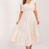 Letnia sukienka wiskozowa o rozkloszowanym fasonie to wygodna i stylowa propozycja na codzienne wyjścia. Wykonana z lekkiej, przewiewnej wiskozy, zapewnia komfort noszenia nawet w upalne dni. Gładka tkanina oraz długość za kolano nadają jej uniwersalny charakter, który sprawdzi się zarówno podczas spacerów, jak i spotkań w gronie bliskich. Krótki rękaw i klasyczny okrągły dekolt podkreślają prostotę i kobiecość modelu. Dodatkowym atutem jest wiązanie w pasie, które pozwala podkreślić talię i nadać sylwetce lekkości. To idealna sukienka na lato ? zwiewna, praktyczna i zawsze na czasie.