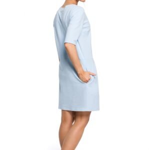 Prosty krój i oryginalne detale nadają tej mini sukience z dzianiny, z lekko obniżoną talią, zakładkami po bokach oraz kokardą na ramieniu, wyjątkowego uroku.