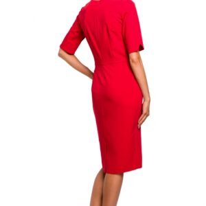 Subtelna i elegancka sukienka ołówkowa z podwyższona linią talii i dekoltem V z wycięciami. Sukienka z krótkimi rękawami, zapinana na kryty zamek. Sukienka bez podszewki. Soft office w najlepszym wydaniu.
