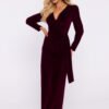 Jedna suknia i kilka możliwości stylizacji. Rozkloszowany fason w wersji maksi z dekoltem typu halter to sprawdzone rozwiązanie dla pań ceniących sobie swobodę, lub chcących zamaskować mankamenty figury. Sukienka wykonana z materiału z brokatem, bez podszewki. Do kompletu pasek do wiązania.