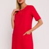Sukienka-tunika z kołnierzykiem i dekoltem na plecach ozdobionym łańcuszkiem. Sukienka z długim rękawem, o luźnym kroju.