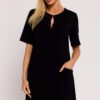 Sukienka-tunika z kołnierzykiem i dekoltem na plecach ozdobionym łańcuszkiem. Sukienka z długim rękawem, o luźnym kroju.