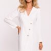 Sukienka z długim rękawem, kołnierzykiem oraz dekoltem w literę V. Sukienka odcinana w talii, na przodzie ozdobne guziki. Sukienka bez podszewki, zapinana na kryty zamek. U dołu ozdobne plisowanie. Zaprojektowana i uszyta w Polsce.