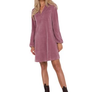 Sukienka welurowa z długim rękawem oraz dekoltem w literę V. Sukienka o kroju trapezu, bez podszewki. Zaprojektowana i uszyta w Polsce.