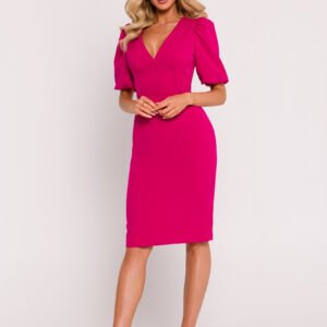 Prezentujemy wyjątkową sukienkę z tkaniny, zaprojektowaną i uszytą z pełnym profesjonalizmem w Polsce. Ta taliowana sukienka to połączenie elegancji, klasy i wyrafinowanego designu, który emanuje z polskiego rzemiosła krawieckiego. Górna część sukienki charakteryzuje się gorsetową konstrukcją na fiszbinach, co nadaje jej wyjątkową formę i perfekcyjne podkreślenie sylwetki. Głęboki dekolt w kształcie litery V dodaje sukience subtelnej zmysłowości, podkreślając kobiece atuty. Krótkie bufiaste rękawy to elegancki i modny element, który dodaje sukience lekkości i romantycznego wyrazu. Dół ołówkowy, mocno zaznaczający talię, nadaje całej stylizacji klasyczności i ponadczasowego uroku. Długość sukienki przed kolano sprawia, że jest to idealny wybór na wiele różnych okazji. Ozdobny metalowy zamek z tyłu to nie tylko praktyczny detal ułatwiający zakładanie sukienki, ale również element stylizacyjny, który dodaje sukience charakteru. Rozcięcie z tyłu dodaje subtelnej dozy seksapilu, jednocześnie umożliwiając swobodę ruchu. Sukienka została specjalnie zaprojektowana bez podszewki, co pozwala na naturalne układanie się tkaniny i podkreślenie jej lekkości. To nie tylko ubranie, to dzieło sztuki krawieckiej, które wyróżnia się na tle międzynarodowej mody, a zarazem reprezentuje polską tradycję krawiecką w najlepszym świetle.
