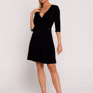 Prezentujemy niezwykłą sukienkę z dzianiny, stworzoną z najwyższą starannością w Polsce, gdzie rzemieślnicza precyzja spotyka się z nowatorskim designem. To mini sukienka, która emanuje stylem, komfortem i wyjątkowym polskim charakterem. Fason tej sukienki to rozkloszowany krój, który nadaje całej stylizacji lekkości i dziewczęcego uroku. Dolna część sukienki układa się w piękny, zwiewny sposób, tworząc subtelny balans między elegancją a swobodą. Górna część sukienki, dopasowana na zakładkę, podkreśla kobiecą sylwetkę, dodając finezji każdemu ruchowi. Rękawy długości za łokcie nadają sukience uniwersalności, pozwalając nosić ją zarówno w cieplejsze dni, jak i podczas chłodniejszych wieczorów. Ta sukienka jest doskonałym wyborem na wiele różnych okazji, od letnich przyjęć po wieczorne spotkania z przyjaciółmi. Talia sukienki jest lekko elastyczna, co gwarantuje wygodę noszenia i podkreśla kobiecą sylwetkę. Dodatkowo, ozdobna logowana blaszka umieszczona w talii to elegancki detal, który nadaje sukience wyjątkowego charakteru i podkreśla polską jakość tego projektu. Niezwykłą cechą tej sukienki jest brak podszewki, co sprawia, że materiał delikatnie otula ciało, pozostawiając uczucie lekkości i swobody. To nie tylko ubranie, to manifestacja osobistego stylu i dumy z polskiego kunsztu krawieckiego. W tej sukience każda kobieta poczuje się nie tylko modnie, ale również dumna wspierając lokalne rzemiosło i tradycje.
