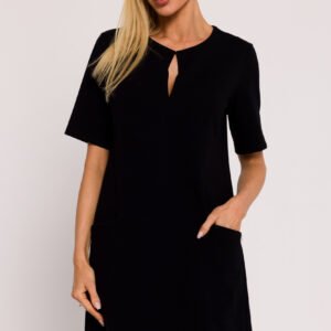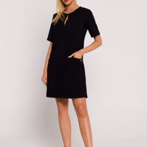 Ta sukienka z dzianiny to wyjątkowy produkt, zaprojektowany i wykonany z dbałością o detale w Polsce, co podkreśla wysoką jakość i styl polskiego krawiectwa. Sukienka posiada fason litery A, co nadaje jej lekkości, jednocześnie podkreślając kobiecą sylwetkę. Subtelne wycięcie w dekolcie dodaje sukience delikatności, tworząc harmonijną równowagę pomiędzy elegancją a codziennym komfortem. Krótkie rękawy sprawiają, że sukienka jest idealna na cieplejsze dni, dodając lekkości całej stylizacji. Praktyczne boczne kieszenie ukryte w szwach na przodzie sukienki są nie tylko funkcjonalne, ale także dodają nonszalancji i miejskiego charakteru. Dekoracyjna logowana blaszka umieszczona na jednej z kieszeni stanowi elegancki element zdobniczy, podkreślający unikalność sukienki. Warto zaznaczyć, że sukienka nie posiada podszewki, co czyni ją lekką i przewiewną, doskonałą na letnie dni. To ubranie nie tylko podkreśla polski design i tradycję krawiecką, ale również łączy w sobie funkcjonalność, wygodę i modowy styl. Sukienka ta stanowi doskonały wybór dla kobiet, które poszukują wyjątkowego kawałka garderoby, idealnego zarówno na codzienne noszenie, jak i na specjalne okazje.