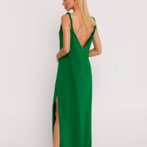 Sukienka z dzianiny to wyjątkowy produkt, stworzony z myślą o kobietach ceniących sobie swobodę ruchu, komfort i modowy styl. Projekt i produkcja odbyły się w Polsce, co gwarantuje wysoką jakość wykonania i dbałość o detale. Sukienka prezentuje się w stylu oversize, co sprawia, że nosząca ją kobieta odczuje nie tylko wygodę, ale również wpisze się w aktualne trendy modowe. Fason litery A nadaje sukience luźny, zwiewny charakter, jednocześnie podkreślając subtelność i kobiecość. Zakładany przez głowę model sukienki sprawia, że jej noszenie jest wyjątkowo komfortowe, jednocześnie pozostając modnym i stylowym elementem garderoby. Skręcone ramiączka nadają sukience lekkości, podkreślając nonszalancję i swobodę. Dekolt sukienki został zaprojektowany w kształcie litery V z przodu, co nadaje całości delikatności i elegancji. Jednak to głęboki dekolt z ozdobną blaszką umieszczoną z tyłu sprawia, że sukienka staje się niezwykle efektowna. Blaszka jest starannie wykonana, dodając subtelny akcent i wzbogacając design sukienki. Warto zaznaczyć, że sukienka nie posiada podszewki, co czyni ją lekką i przewiewną. To idealny wybór na letnie dni, kiedy chcemy poczuć się zarówno wygodnie, jak i stylowo. Ta sukienka z dzianiny to nie tylko element garderoby, ale prawdziwe dzieło krawieckie, które pochodzi z Polski, kraju z tradycją w produkcji wysokiej jakości odzieży.