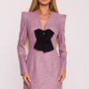 Elegancka sukienka mini o gorsetowym kroju, wykonana z wysokiej jakości tkaniny. Sukienka wyróżnia się usztywniającymi fiszbinami w górnej części, które zapewniają idealne dopasowanie i podkreślają sylwetkę. Przód sukienki ozdobiony jest eleganckimi klapkami, które dodają jej wyjątkowego charakteru. Sukienka nie posiada podszewki, co sprawia, że jest lekka i przewiewna. Z tyłu znajduje się dyskretny kryty zamek, który ułatwia zakładanie i zdejmowanie. Całość zaprojektowana i uszyta w Polsce, łącząca nowoczesny design z lokalnym rzemiosłem.