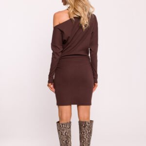 Ta stylowa mini sukienka z prążkowanej dzianiny bawełnianej to połączenie nowoczesnego designu i wygody. Jej dopasowany fason pięknie podkreśla sylwetkę, a zakładana przez głowę konstrukcja zapewnia łatwość noszenia. Sukienka wyróżnia się marszczeniem po boku, które dodaje oryginalnego charakteru i pozwala na delikatne zbluzowanie góry, nadając całości swobodniejszy, lekko nonszalancki look. Długi rękaw oraz dekolt opadający na jedno ramię tworzą zmysłowy, asymetryczny efekt. Projektowana i szyta w Polsce, gwarantuje najwyższą jakość materiałów i wykonania. Idealna na wyjątkowe okazje i codzienne stylizacje.