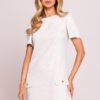 Sukienka mini wykonana z wysokiej jakości tkaniny bawełnianej, zapewniającej komfort i przewiewność. Fason z obniżoną talią subtelnie podkreśla sylwetkę, a kontrafałdy w dolnej części nadają jej lekkości i elegancji. Krótkie rękawy ozdobione zaszewkami i dekoracyjnymi guzikami dodają całości wyjątkowego charakteru. Sukienka zapinana na kryty zamek z tyłu, bez podszewki, co sprawia, że jest lekka i przyjemna w noszeniu. Zaprojektowana i uszyta w Polsce z dbałością o każdy detal.