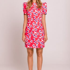 Elegancka i kobieca sukienka mini wykonana z wysokiej jakości tkaniny z kwiatowym nadrukiem. Model podkreśla talię dzięki subtelnym przeszyciom, a krótkie rękawy na poduszkach nadają jej wyjątkowego charakteru. Sukienka zapinana jest z tyłu na kryty zamek, co zapewnia komfort noszenia i estetyczne wykończenie. Brak podszewki sprawia, że jest lekka i idealna na ciepłe dni. Całość została zaprojektowana i uszyta w Polsce, z dbałością o każdy detal.