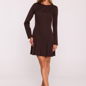 Klasyczna sukienka wykonana z gładkiej tkaniny o matowym wykończeniu to propozycja, która łączy prostotę i elegancję w nowoczesnym wydaniu. Minimalistyczny design sprawia, że doskonale sprawdzi się zarówno w codziennych stylizacjach, jak i podczas bardziej formalnych okazji. Model ma subtelny dekolt w kształcie łódki oraz długie rękawy, które nadają całości ponadczasowego charakteru. Sukienka zapinana jest na kryty zamek z tyłu, co zapewnia wygodę i estetyczne wykończenie. Fason lekko dopasowany w górnej części został urozmaicony dołem w kontrafałdy, które dodają sylwetce lekkości i kobiecego wdzięku. Prosta, taliowana linia subtelnie podkreśla figurę, a mini długość nadaje sukience nowoczesnego, dziewczęcego charakteru. Zaprojektowana i uszyta w Polsce, stworzona z myślą o kobietach, które cenią ponadczasową elegancję w minimalistycznej formie.
