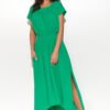 Sukienka oversize wykonana z lekkiej i przewiewnej dzianiny dresowej. Posiada dekolt w serek oraz rękawy zakończone cienkim ściągaczem. Na jednym z rękawów obecna jest ozdobna aplikacja Numinou. Tył sukienki jest nieco dłuższy, niż przód. Delikatna falbana jest wszyta w dolnej części sukienki, co dodaje jej dziewczęcego uroku. Sukienka jest bardzo swobodna, przez co komfortowa w użytkowaniu. Można ją nosić luźno lub spiąć ulubionym paskiem. Nad biustem obecne jest lekkie drapowanie, które doskonale sprawdzi się u pań z mniejszą miseczką. Załóż do niej sandały lub trampki i ciesz się swobodą połączoną z kobiecą ekspresją.