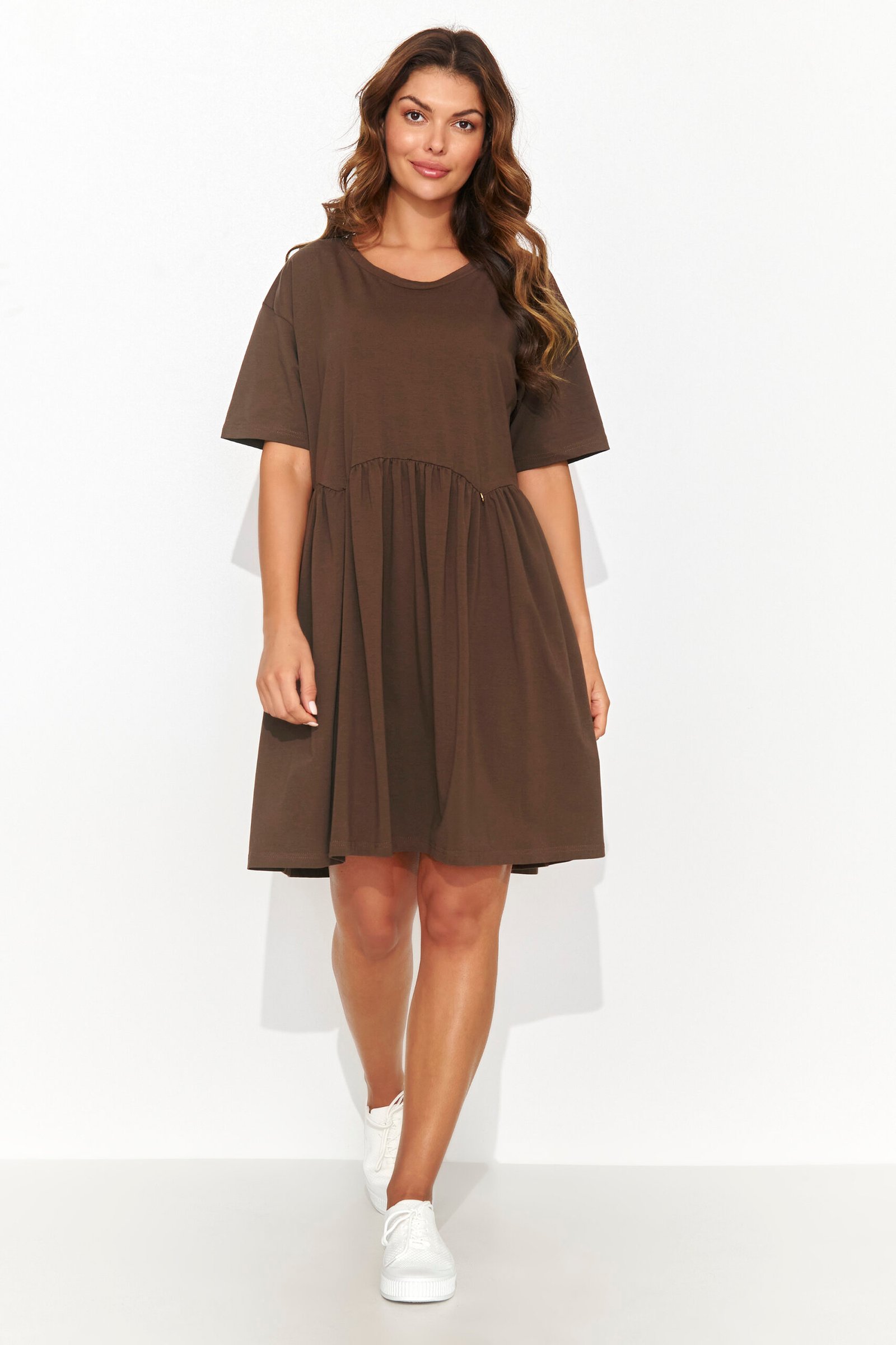 Swobodna sukienka mini o wyjątkowym uroku, z elegancką złotą blaszką wszytą z przodu. Kreacja z krótkim rękawem i casualowym fasonem, emanuje dziewczęcym wdziękiem. Okrągły dekolt idealnie podkreśla beztroski look, dodając lekkości i swobody. Ta sukienka, dostępna w kolorach, to idealny wybór na co dzień, dodający nutę stylu do codziennych aktywności. Świetnie sprawdzi się w pracy, ale i podczas spotkania ze znajomymi. Wszystko jest kwestią dodatków. To połączenie komfortu, elegancji i dziewczęcej finezji, a przy tym bardzo wygodna stylizacja na co dzień.
