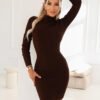 Elegancka brązowa sukienka z krótkim rękawem, wiązaniem w pasie i subtelnym dekoltem typu woda to propozycja dla kobiet ceniących komfort i styl. Asymetryczny krój delikatnie podkreśla sylwetkę, a przewiązanie w talii pięknie ją modeluje.