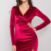 Welurowa sukienka o dopasowanym kroju z długim rękawem oraz kopertowym dekoltem. Idealna propozycja na wiele okazji.