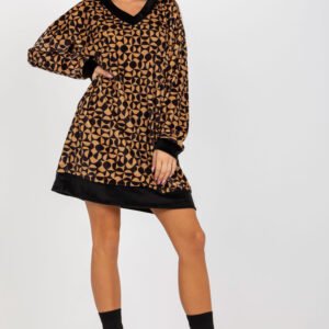 Krótka sukienka welurowa z długim rękawem oraz dekoltem w serek. Idealna na co dzień i nie tylko.